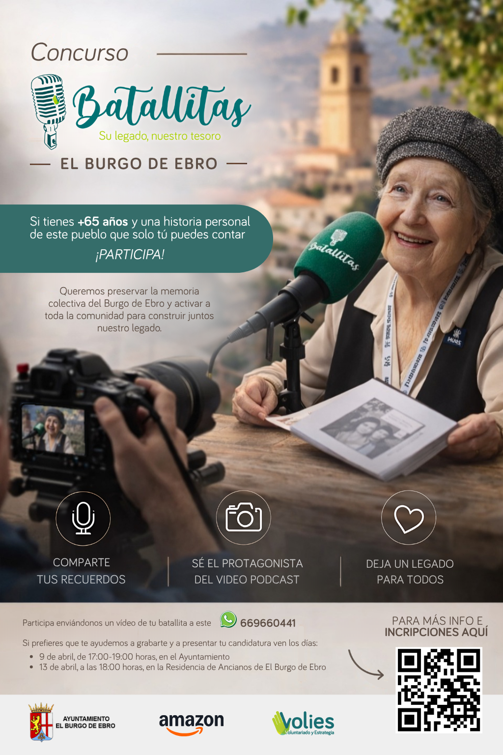 Batallitas es una iniciativa de Volies, impulsada por Amazon, que lleva el formato del video podcast a los pueblos de España para poner en el centro a las personas mayores que mejor representan el alma de cada municipio. Con esta iniciativa, Amazon quiere contribuir a crear un legado cultural permanente en El Burgo de Ebro, donde opera uno de sus centros de datos. De la mano de Volies y en colaboración con el Ayuntamiento del municipio, el proyecto invita a los vecinos y vecinas a participar en un concurso que fomenta el encuentro entre generaciones jóvenes y mayores.